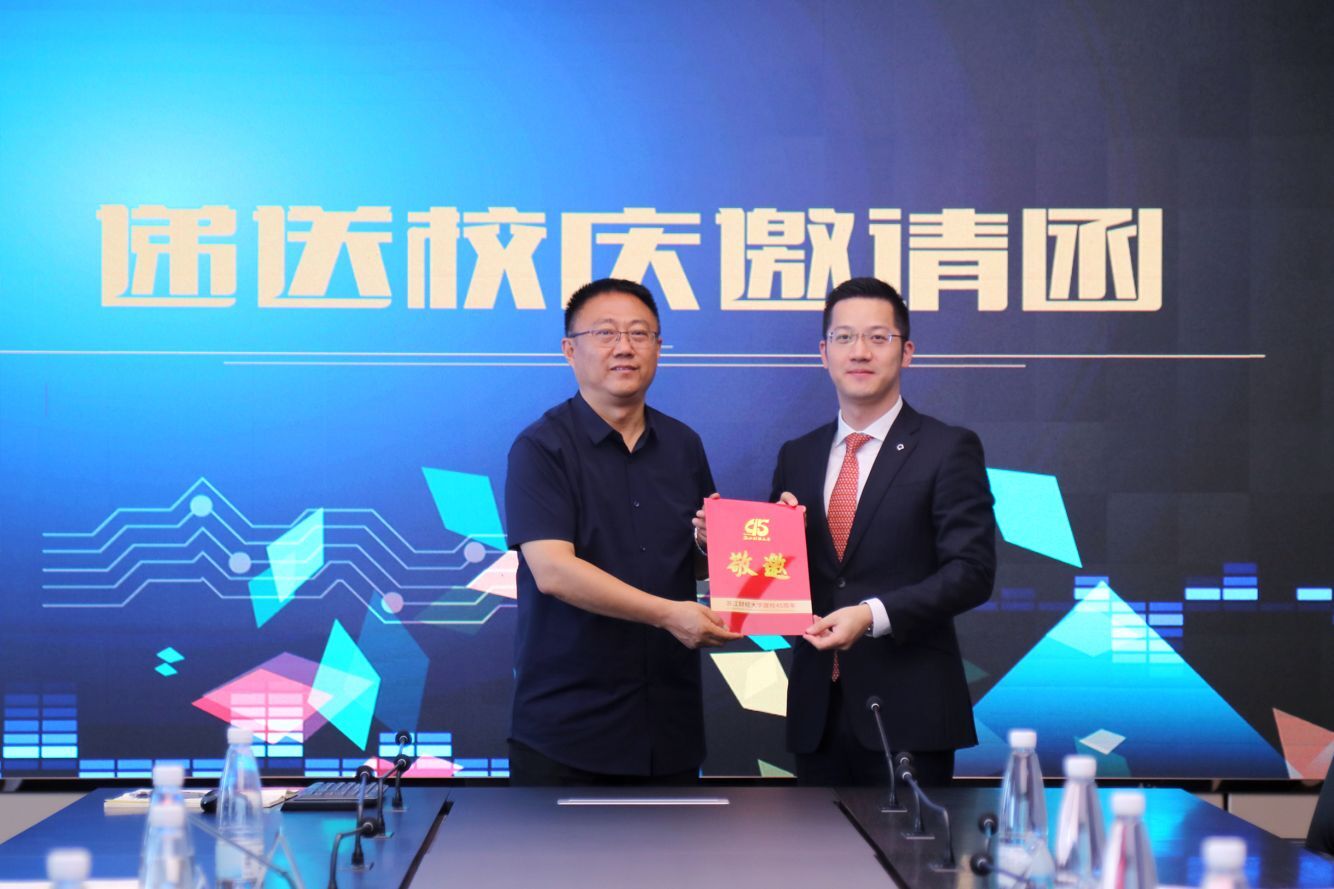 交流会最后,李占荣副校长为王练文总经理及浙财学子代表梁一鸣送上了四十五周年校庆邀请函,诚邀公司领导及全体财经学子参加学校四十五周年庆典。