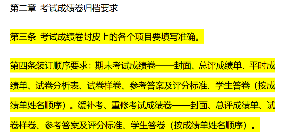 3、试卷归档装订要求: