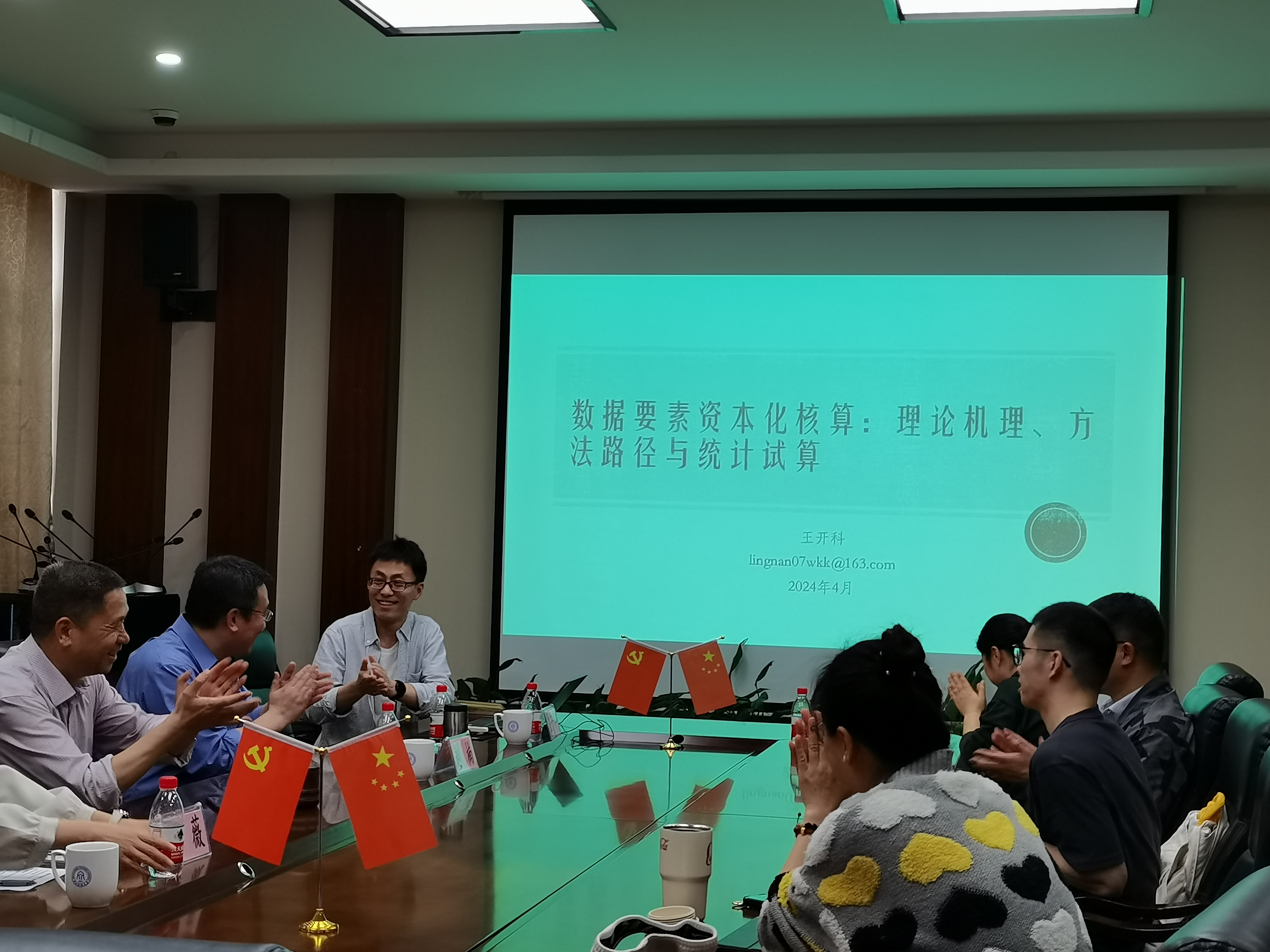 师生作了一场题为“数据要素资本化核算:理论机理、方法路径与统计试算”的学术讲座,讲座由经济统计系主任石薇主持,学院部分教师及研究生代表参加了此次讲座。