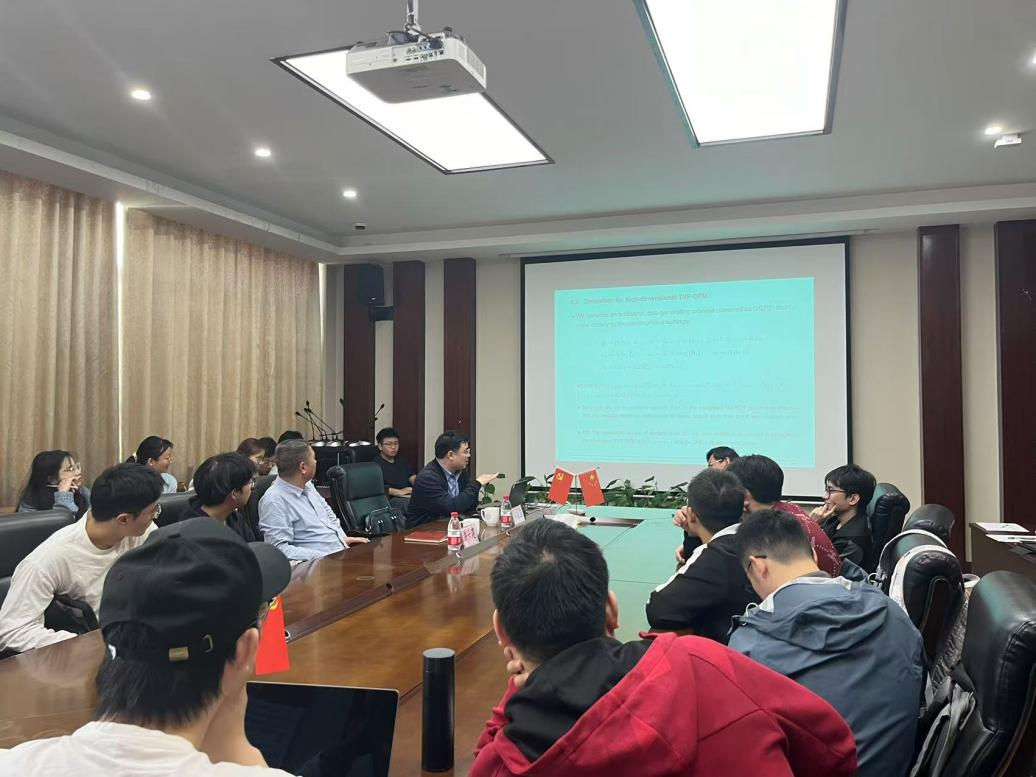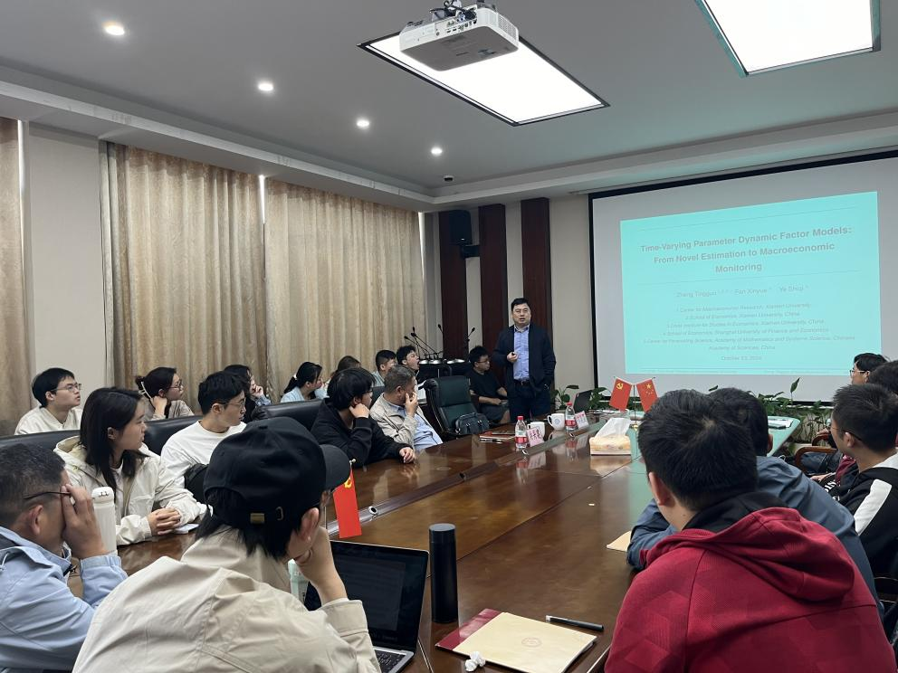 举行数海领航大讲堂2024年第14期。本期邀请厦门大学郑挺国教授为全院师生带来一场题为“Time Varying Parameter Dynamic Factor Models:From Novel Estimation to Macroeconomic Monitoring”的学术讲座。讲座由院长洪兴建教授主持,部分教师及研究生参加了此次讲座。