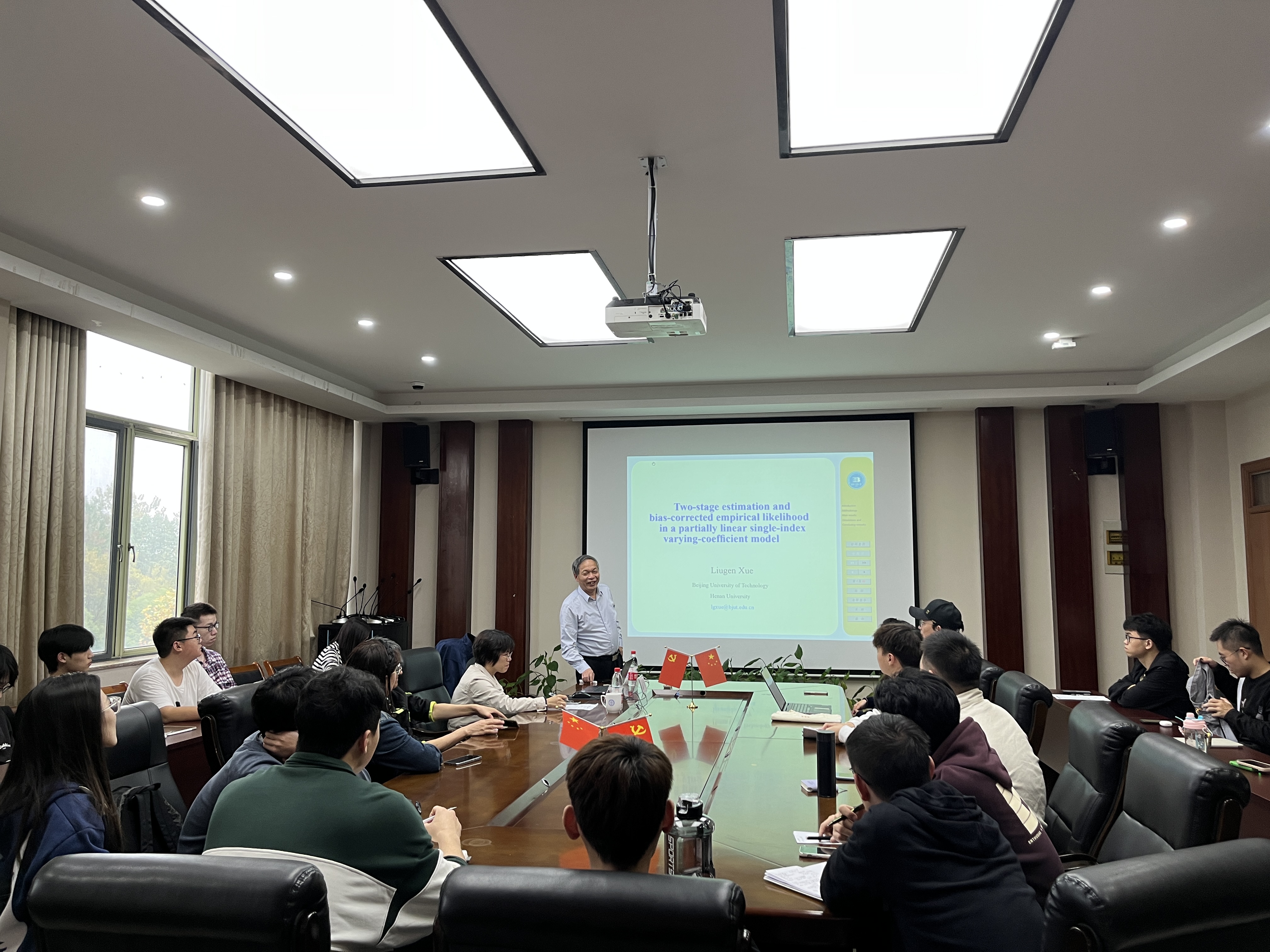 在本次讲座中,薛留根教授介绍了一种具有广泛适应性的部分线性单指标变系数模型,并提出了一种两阶段估计方法和一种偏差校正后的经验似然方法,通过数值模拟来验证方法的有效性,进一步给出了一个实际数据分析的应用实例。
