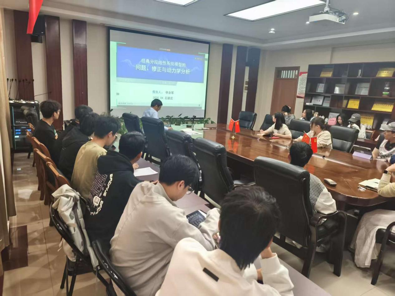 举行数海领航大讲堂2025年第9期。本期邀请石家庄铁道大学申永军教授在线作了一场题为“经典分段线性系统模型的问题、修正与动力学分析”的学术讲座。讲座由成人短视频