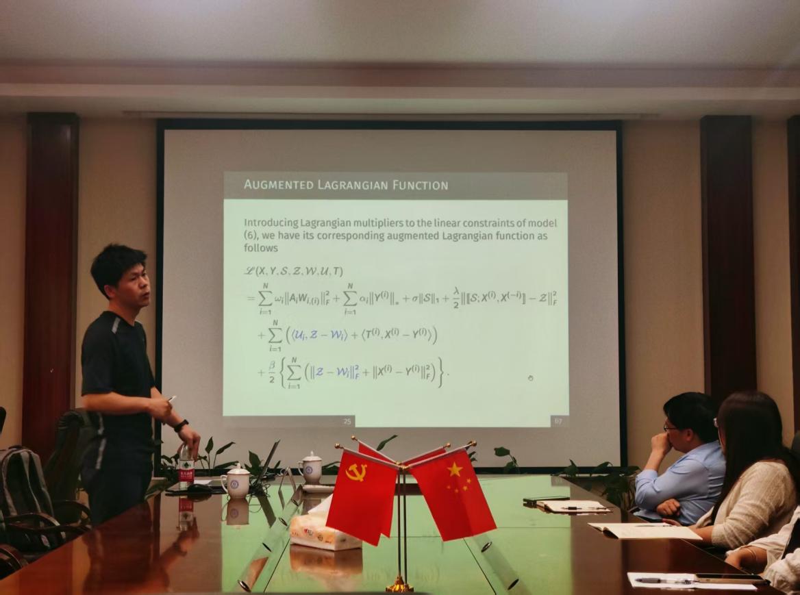 何洪津教授围绕大数据分析、计算机视觉和网络工程领域中的核心问题——张量补全问题展开了深入探讨。考虑到问题驱动的高阶张量补全问题往往具有低秩性、多维度特征等特点,传统矩阵方法无法高效处理这些实际问题。在本次讲座中,何教授系统性阐释了面向高阶张量补全问题的几类优化模型及其相关算法。这些方法可以充分利用张量所固有的结构特性,特别是针对张量数据的稀疏性和低秩性进行优化设计,通过构建多模态张量分解模型与自适应正则化约束,实现了对高维数据结构的精准建模。为验证方法有效性,何教授选取了交通流量数据、彩色图像以及人脸识别等典型应用场景下的真实数据集进行实验,结果表明所提出的张量优化算法在计算效率与恢复精度方面均显著优于传统矩阵方法。