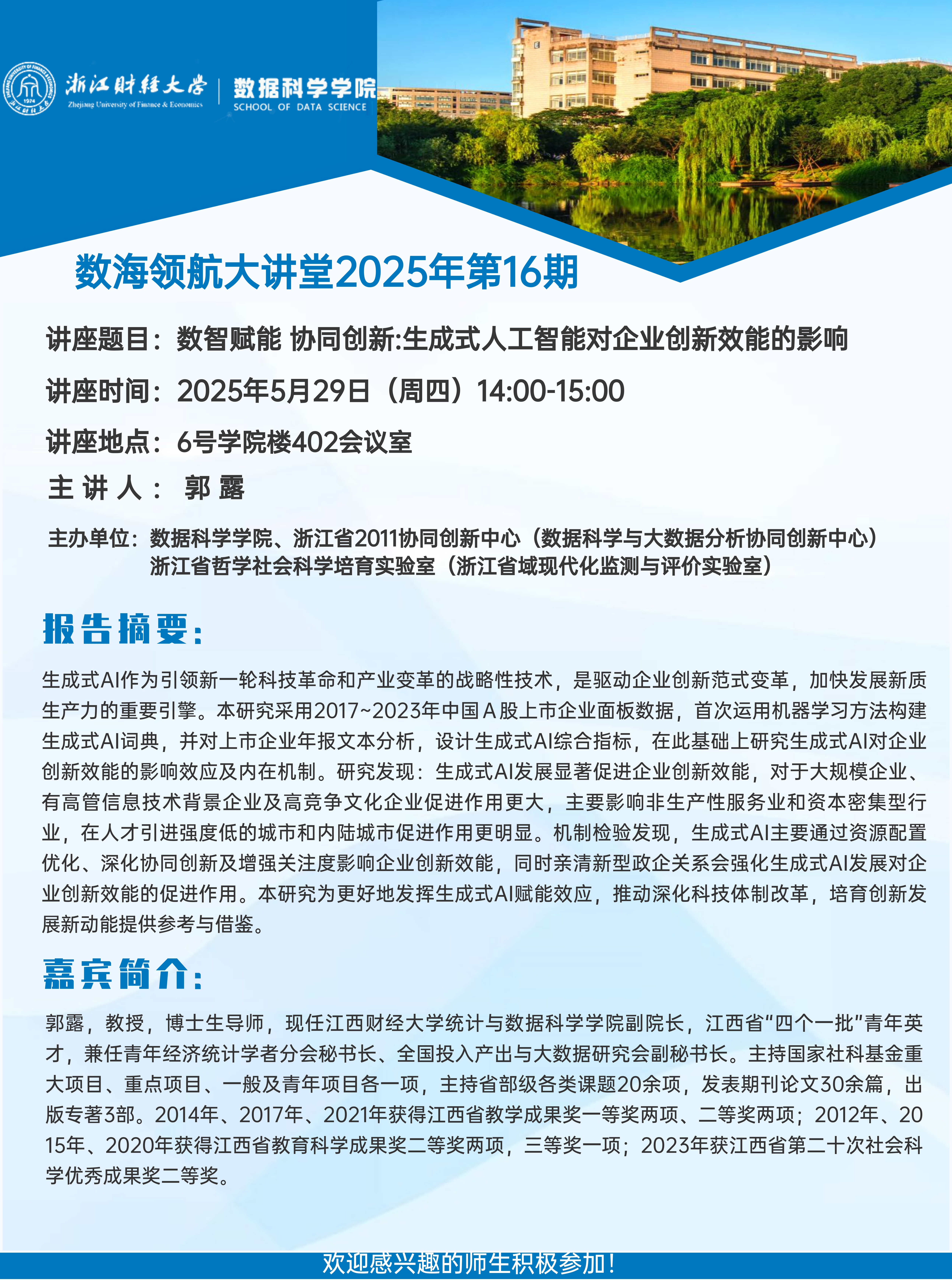 上一条:数海领航大讲堂2025年第17期-天津财经大学杨贵军教授 下一条:果蝇幼虫软体运动仿真建模——数海领航大讲堂2025年第14期开讲