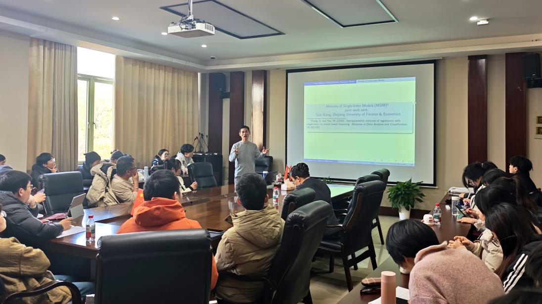 本次讲座为师生搭建了对接国际统计学前沿的学术交流平台,让大家对有限混合模型的发展趋势、半参数建模的核心逻辑及跨领域应用价值形成了系统认知。讲座引入的半参数扩展思路突破了传统全参数模型的束缚,为复杂异质数据的分析提供了更灵活、更稳健的方法论支撑,为相关领域的科研创新拓宽了思路。讲座后,师生围绕半参数模型的估计精度优化、不同领域数据的适配性等问题展开热烈探讨,现场学术氛围浓厚,有效激发了师生的科研热情与创新思维。