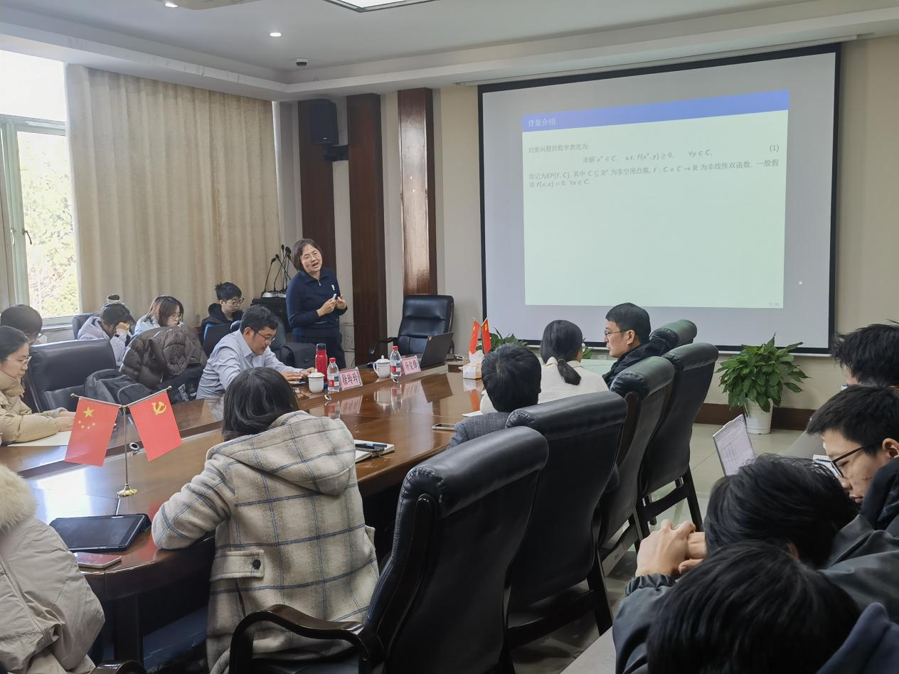 徐教授进一步阐述了算法的创新之处,包括其在不精确求解条件下的推广。她指出,该算法允许在每一步迭代中近似求解子问题,同时仍能保持收敛性,这为大规模均衡问题的求解提供了更高的灵活性和计算效率。报告过程中,徐教授通过严谨的数学推导和生动的实例,使师生们深入理解了算法的核心思想与理论贡献。