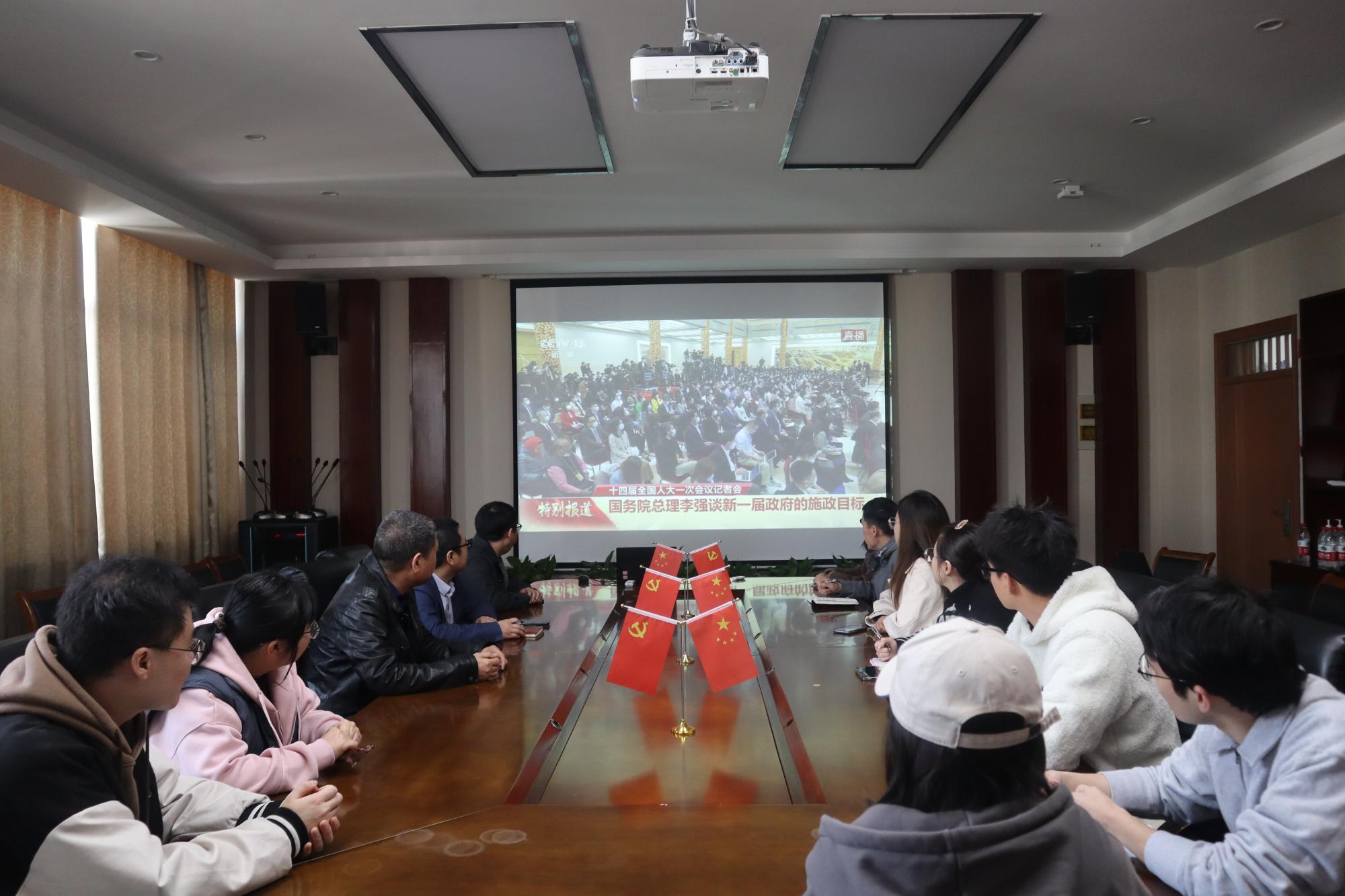 组织师生观看了李强总理答中外记者提问,院长洪兴建、院党委书记段雪辉、各党支部书记、各办公室主任、学生代表等人集中参会观看直播。