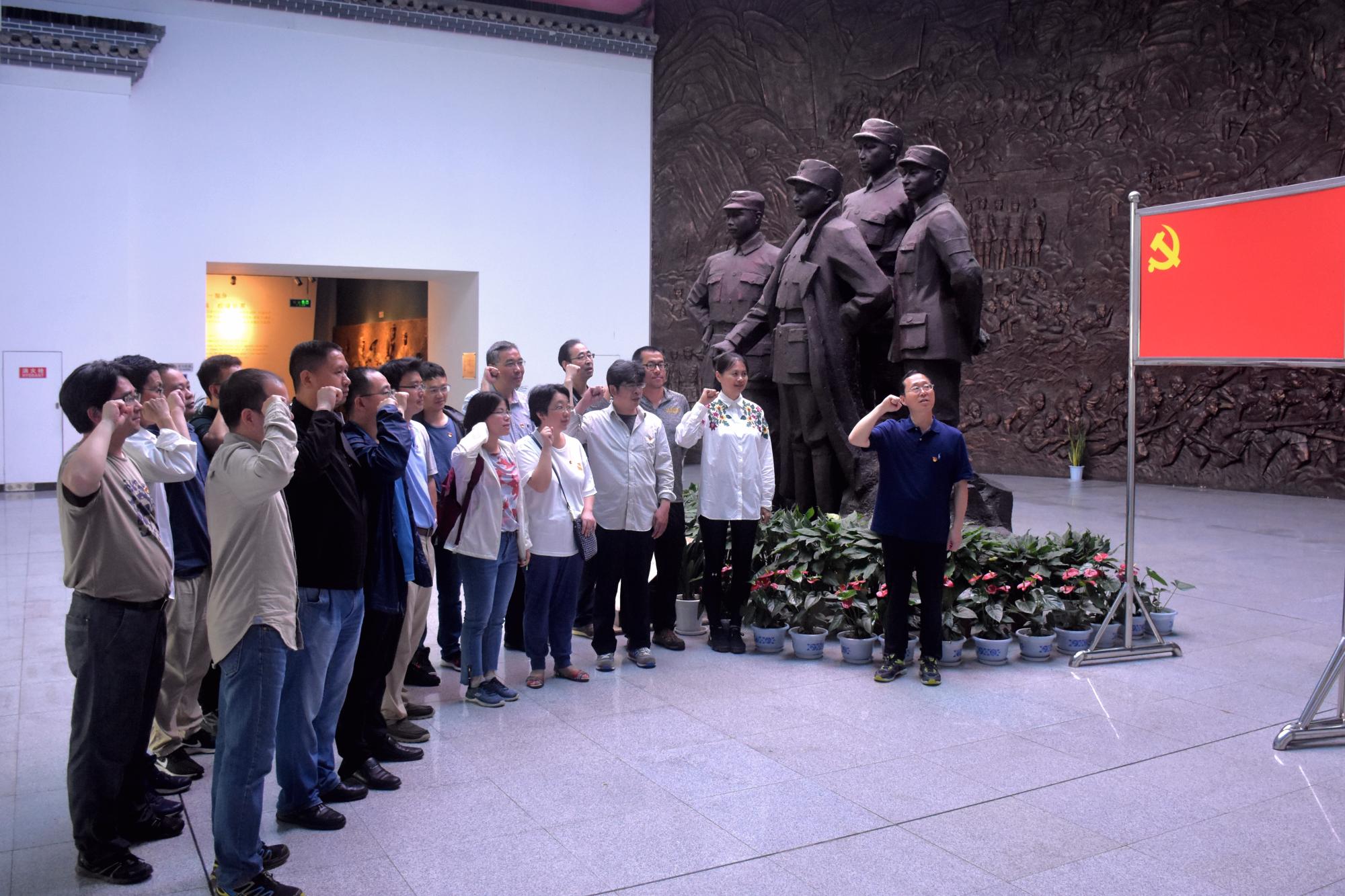 接着,教工党员们又来到新四军史料陈列馆,进一步了解新四军成立、成长、遭遇重大挫折,而后又涅槃重生的历史过程,深入学习领悟“纪律严明、不屈不挠、报国为民、团结奋斗”的“铁军”精神。在叶挺、项英等抗战先烈的铜像前,学院党委书记周君兴带领教工党员重温入党誓词。