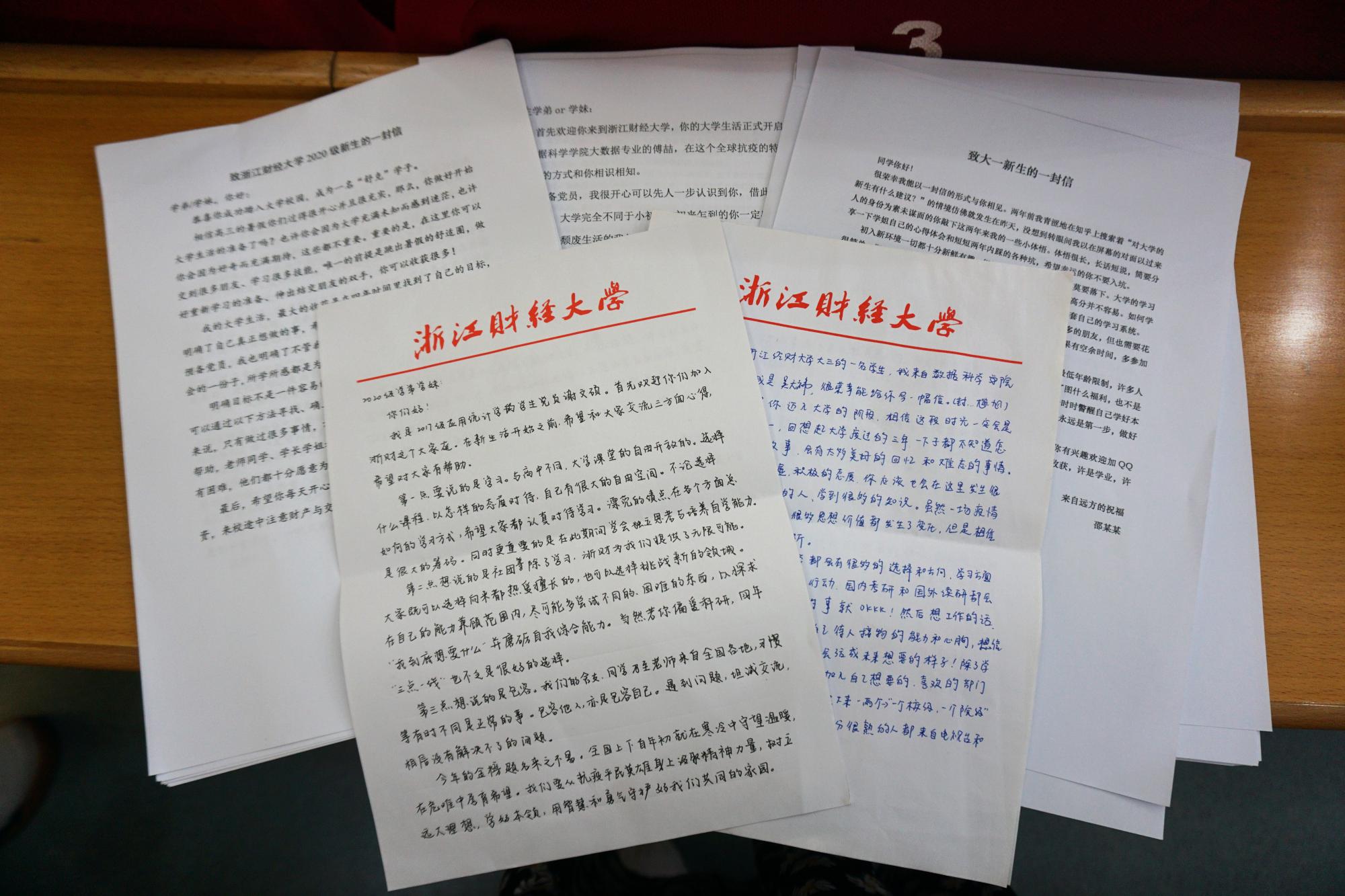 部分学生党员参与了寄送2020级新生录取通知书的志愿服务,并随录取通知书附上了各支部学生党员写给新生的信。