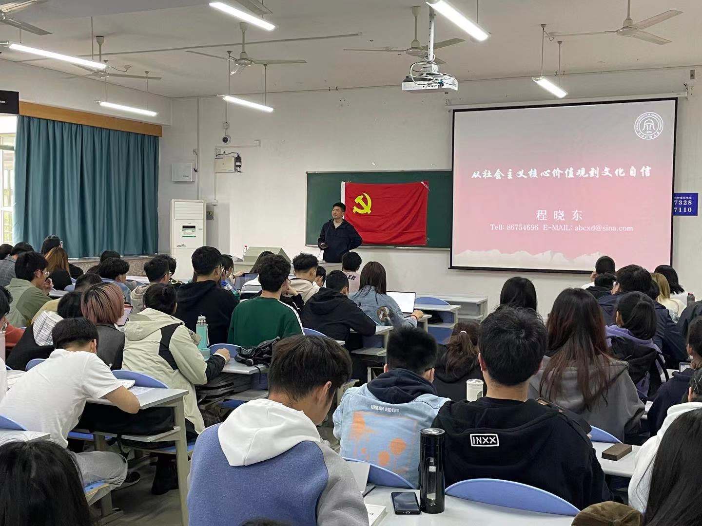 陆頲浩老师讲解了青春名义下的使命与责任,带领大家朗诵了《破窑赋》,让大家明白身为新时代的青年和入党积极分子,我们要积极承担社会责任,为推动社会主义现代化发展贡献自己的力量。罗金艳老师通过《中国共产党纪律处分条例》和几个违规违纪的党员事迹,告诉我们话“廉”的战略意义和必要性,警示我们即使身在校园,也要做到清廉正直,“青年兴则国家兴,青年强则国家强”,只有青年做到有理想、有本领、有担当,国家才有前途,民族才有希望。在“大学生如何积极争取入党”专题课中,陈炜老师围绕“入党基本条件”“端正入党动机”“如何创造入党条件?”“申请入党”四个部分提出积极争取入党的“八大要求”,为积极分子入党提供了明确的努力方向。在“从社会主义核心价值观到文化自信”专题课中,程晓东老师系统阐述了国家的制度优势,充分展现了遵循社会主义核心价值观的意义和坚持文化自信、制度自信的重要性。袁慧兰老师讲述了疫情之下生命教育的再思考,她通过许多案例教会了我们如何对生命有一个客观理性的认知。何露霞老师在“当代青年学生党员的责任与担当”课程中强调了青年学生要保持独立的思考能力、坚定的中国立场和坚决的实际行动来彰显当代青年学生的责任与时代担当。