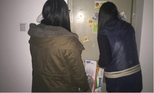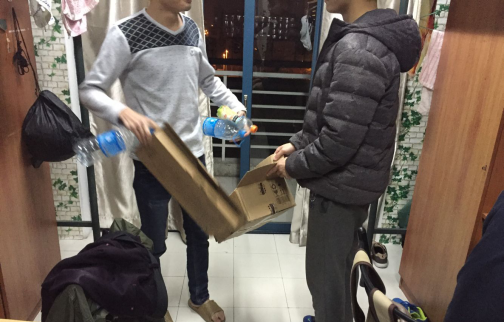 学生在收集寝室内的废品