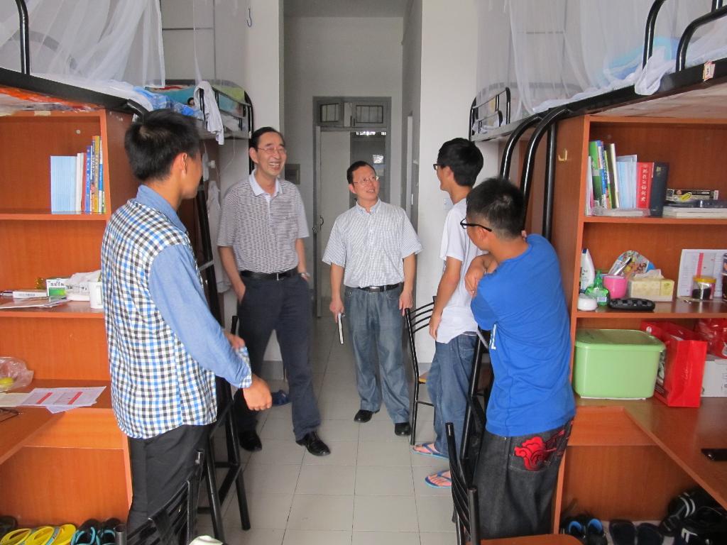 为了更好落实群众路线实践活动,9月22日上午,学院党总支书记杨辉煌、党总支副书记周君兴的在新生辅导员的陪同下,走访了2013级新生寝室。
