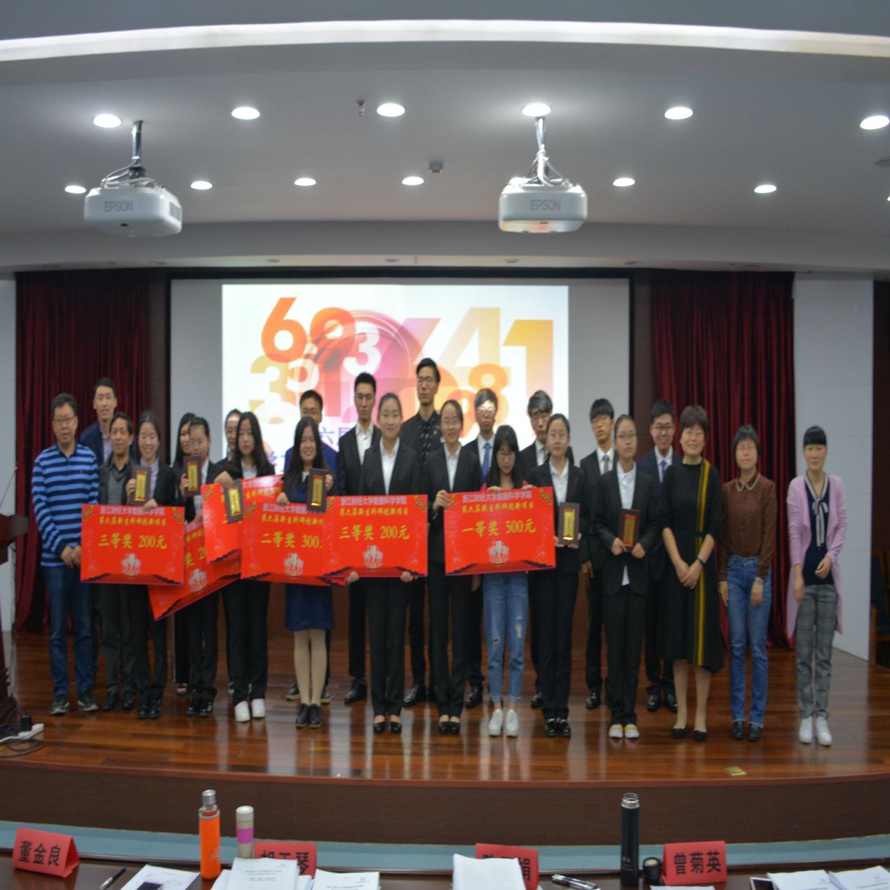 经过近三个半小时选手们的努力讲解与评委们的耐心点评,本次科研答辩终出结果。最终由焦旭坤负责组摘得桂冠,金鑫逸负责组、冯浩阳负责组取得二等奖的佳绩,俞沈悦负责组、吴林灵负责组、郭烨负责组获得三等奖,郑琳霞负责组、费金燕负责组、李玉婷负责组、李昕负责组获得优胜奖。