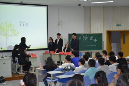 的全体新生参加了这场异彩纷呈的表演。参与这次辩论赛的辩手有正方的俞泉钱、王依、张巍、尚紫荆,反方的徐宁遥、韩润泽、邱张祺、吕道恒。