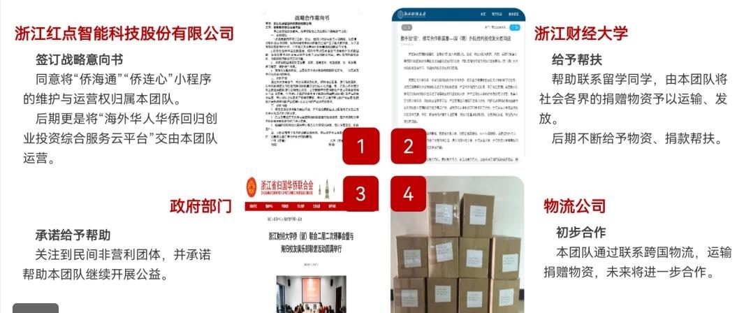 邹珂同学还特别感谢了她的团队伙伴和指导老师,她用“滴水之恩万心暖,寸草之心三春晖”来形容指导老师这一路对他们的支持与培养,帮助他们走正确的道路。而对于团队成员,她自豪的表示,在这个团队里,每个人都配合默契,彼此成长,可以说”不积跬步,无以至千里,不积小流,无以成江海”。团队坚定的表示,希望可以一直做下去。他们对于未来也早有规划,针对物资运输规模和服务侨胞用户数量他们做了一定的目标规划,未来团队将立足丽水、杭州,将侨胞帮扶模式辐射全国,以期帮助更多侨胞群体。这是他们建立“侨平台”从一而终的初心与责任。相信这群有想法有梦想的年轻人,会把这份美好的初心,一直传递下去。