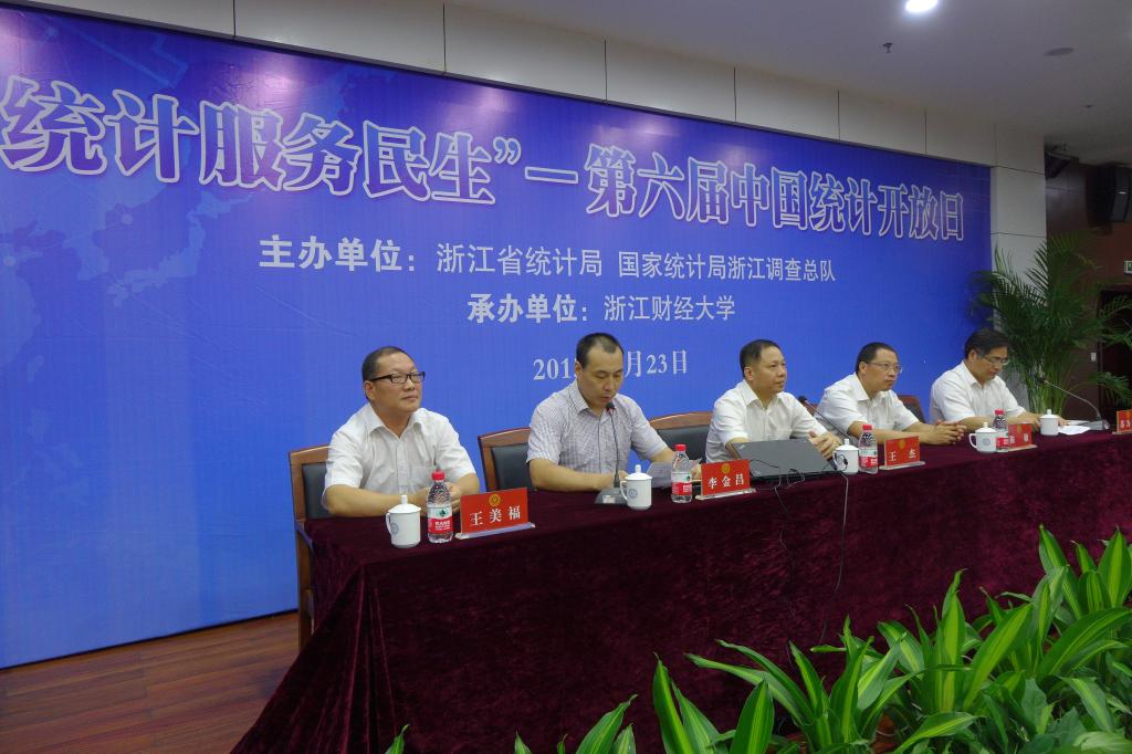承办的“第六届统计开放日”活动在我校学术中心第二报告厅举行,活动主题是“进高校,讲授统计公开课”。参加此项活动的有浙江省统计局党组副书记、副局长、新闻发言人王杰,国家统计局浙江调查总队党组成员、副总队长陈敏,浙江省统计局总统计师王美福,我校校长李金昌、副校长苏为华,省统计局、国家统计局浙江调查总队领导和专家及数学与统计学院领导和师生200余人参加了本次活动。活动由苏为华副校长主持。