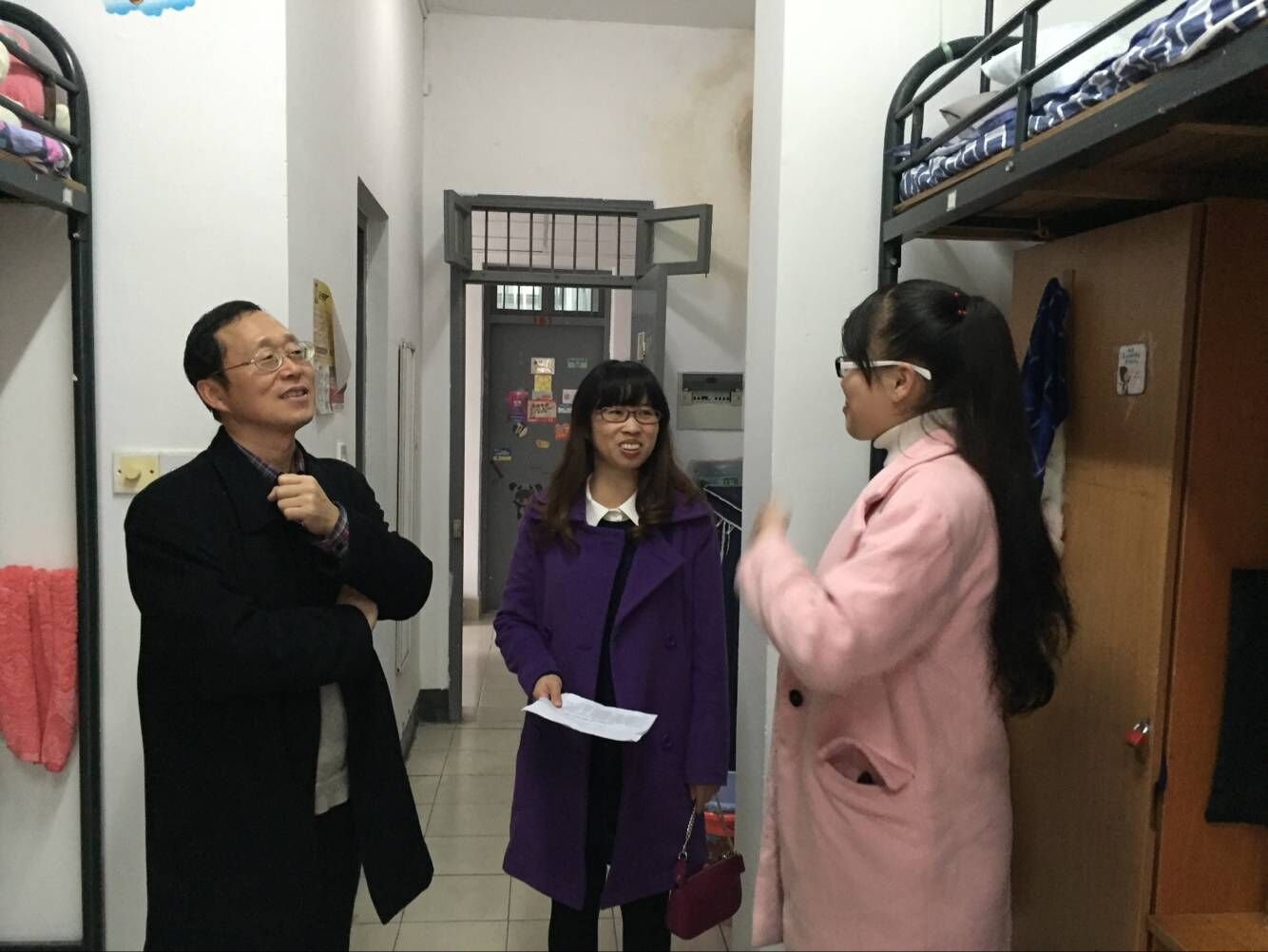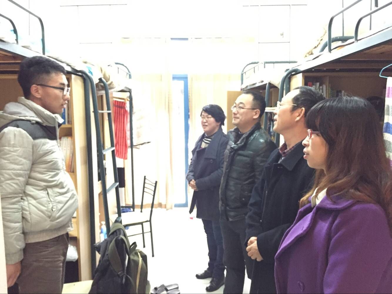 党委书记周君兴老师,副书记刘向前老师,副院长罗季老师,副院长周银香老师,学办主任李钊军老师和辅导员江挺老师一同走访了学院领导联系的学生寝室,并看望了学院领导联系的贫困学生。