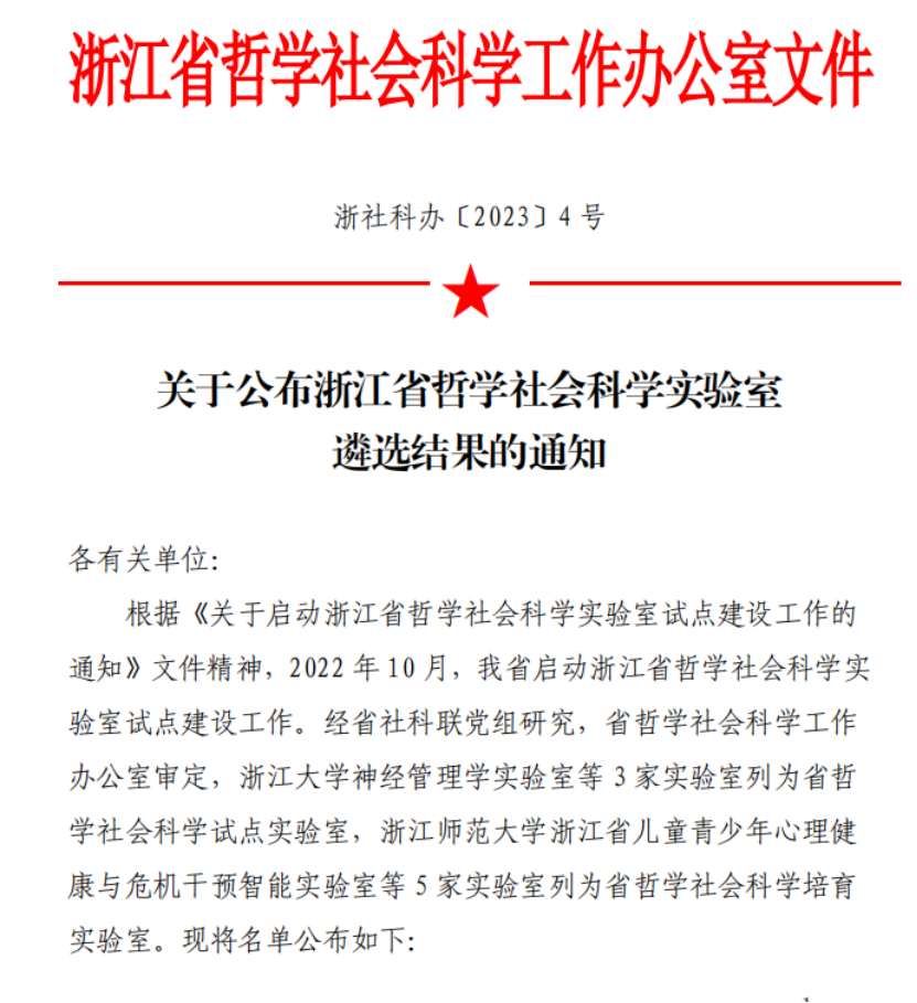 近日,浙江省哲学社会科学工作办公室公布了浙江省哲学社会科学实验室遴选结果(浙社科办[2023]4号),“浙江财经大学浙江省域现代化监测与评价实验室”入选浙江省哲学社会科学培育实验室(5家)。