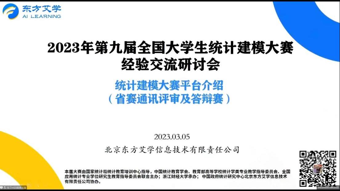 2023年3月5日,第九届全国大学生统计建模大赛分赛区经验交流会通过腾讯线上会议的方式顺利举办。本届全国大学生统计建模大赛由中国统计教育学会、教育部高等学校统计学类专业教学指导委员会、全国应用统计专业学位研究生教育指导委员会联合主办,成人短视频