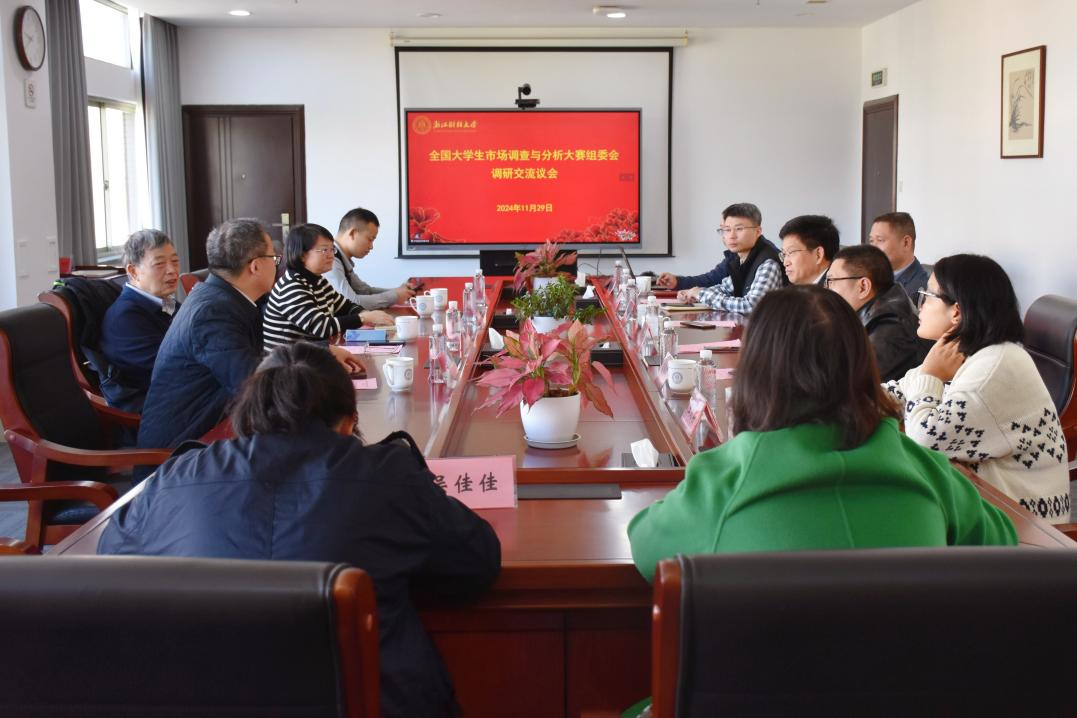 金勇进对学校办赛基础条件表示肯定,并介绍了往届大赛的优秀办赛经验,对明年即将在我校举行的新一届市调大赛本科生组决赛表达了期待。