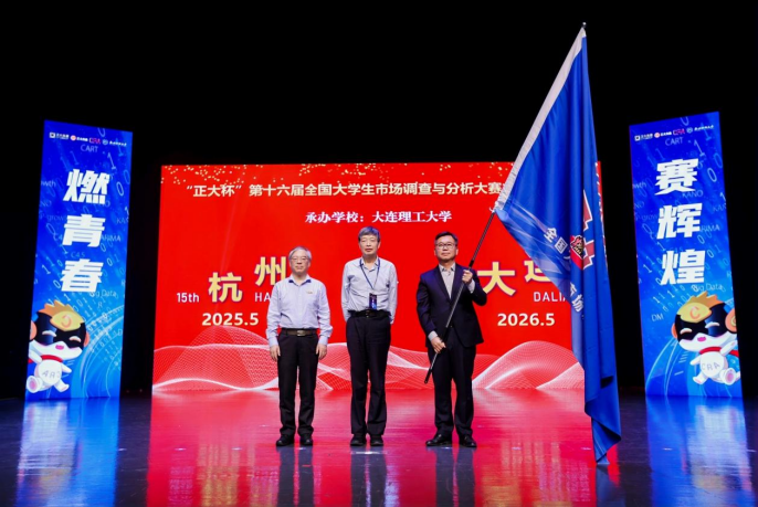 党委委员、纪委书记孙旭东代表本届大赛承办单位,与下一届大赛承办单位代表大连理工大学党委副书记吴松全交接赛旗。