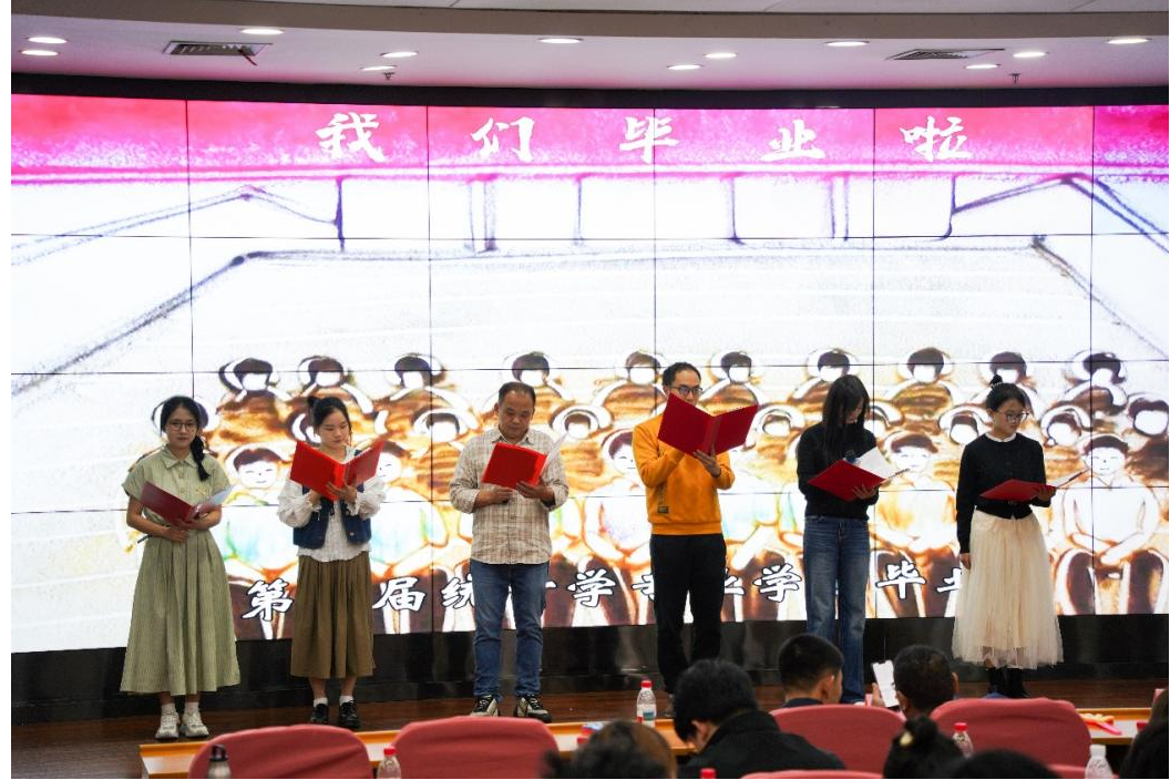 随后,由教师代表、校友代表、在校生代表共同演绎的诗朗诵《我们都是数科人》,以开垦者、传承者和接续者的对话,深情诉说了学院二十年来的奋斗、坚守与梦想,引发了全场强烈的情感共鸣。