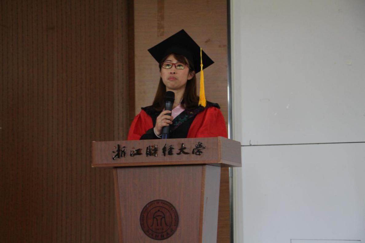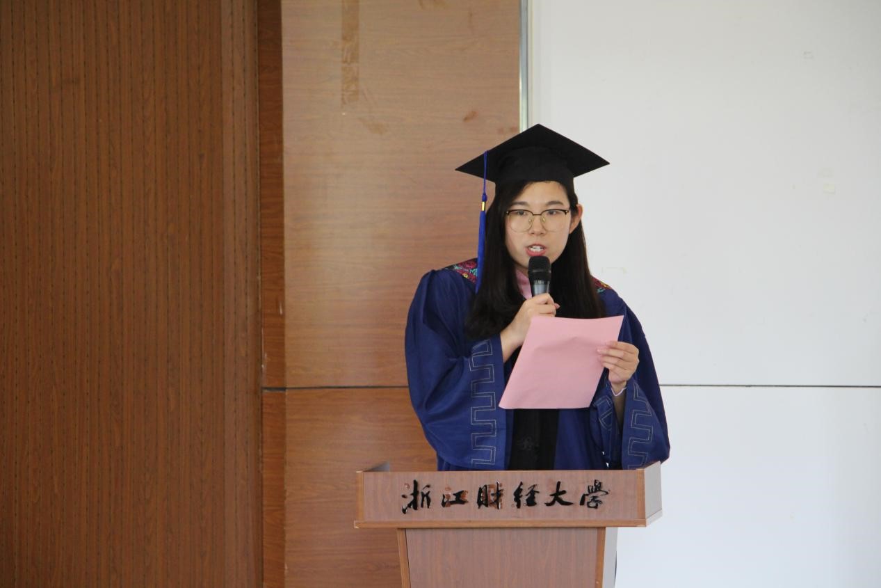 典礼上,毕业研究生代表方丹跟大家一起分享了她的毕业感言。老师的教诲、同学的帮助、父母的支持、学校的鼓励,都是她在学海中遨游的助力,声声句句是对母校深深的不舍与感恩之情。