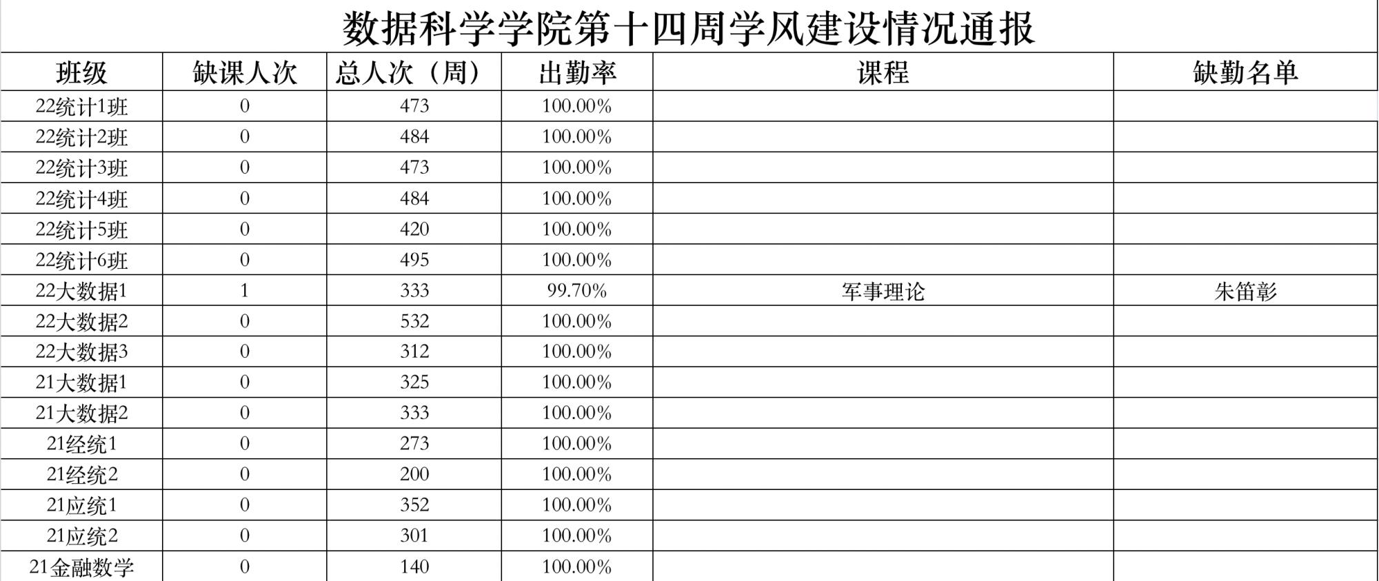 为进一步培育优良学风,构建成人短视频 学风建设的长效机制,营造良好的学习氛围,推进内涵建设,构建优良院风,学院对所有大一、大二班级统一上的课程及晚自习进行了课前全覆盖点名。现将点名情况做如下通报。