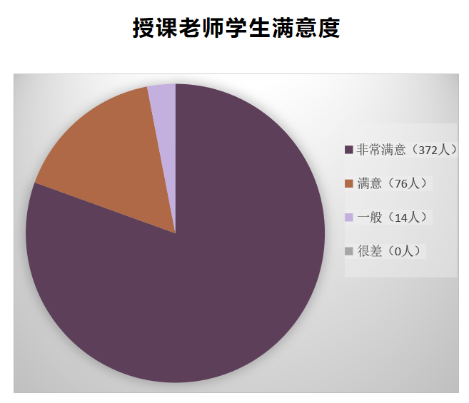 第一阶段课程结束后,开展课堂反馈调查,统计结果如下:十分满意人数总计372人,满意人数76人,一般14人。