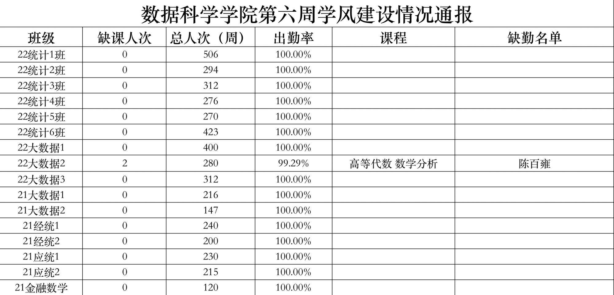 为进一步培育优良学风,构建成人短视频 学风建设的长效机制,营造良好的学习氛围,推进内涵建设,构建优良院风,学院对所有大一、大二班级统一上的课程及晚自习进行了课前全覆盖点名。现将点名情况做如下通报。