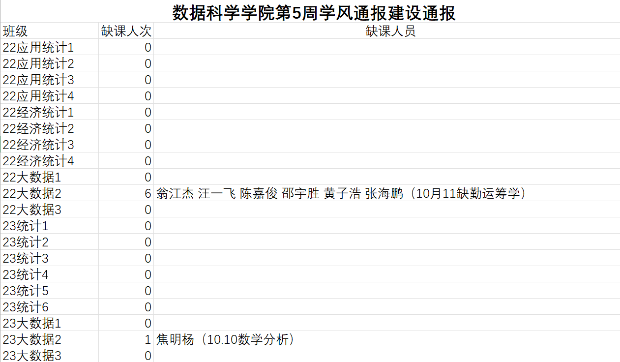 为进一步培育优良学风,构建成人短视频 学风建设的长效机制,营造良好的学习氛围,推进内涵建设,构建优良院风,学院对所有大一、大二班级统一上的课程及晚自习进行了课前全覆盖点名。现将点名情况做如下通报。