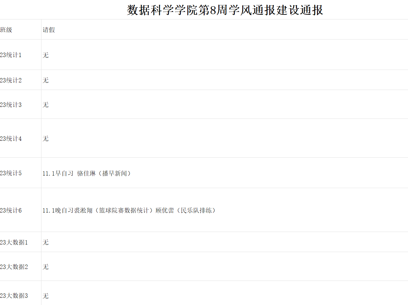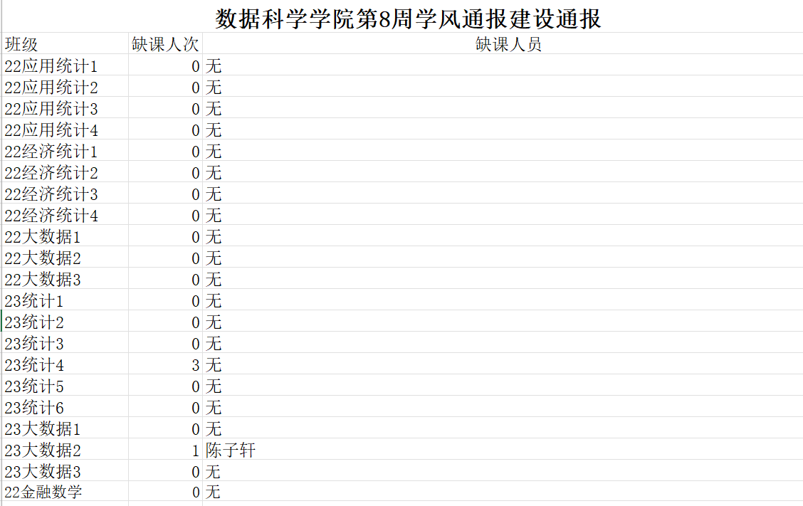 进一步培育优良学风,构建成人短视频 学风建设的长效机制,营造良好的学习氛围,推进内涵建设,构建优良院风,学院对所有大一、大二班级统一上的课程及晚自习进行了课前全覆盖点名。现将点名情况做如下通报。