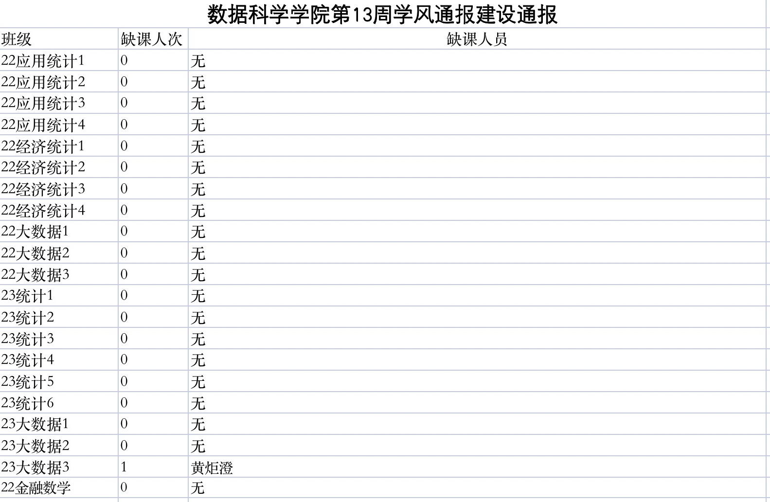 为进一步培育优良学风,构建成人短视频 学风建设的长效机制,营造良好的学习氛围,推进内涵建设,构建优良院风,学院对所有大一、大二班级统一上的课程及晚自习进行了课前全覆盖点名。现将点名情况做如下通报。