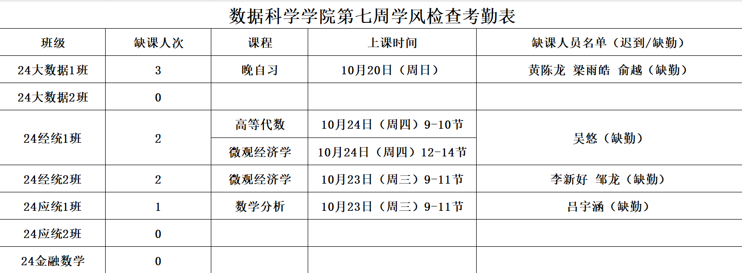 为进一步培育优良学风,构建成人短视频 学风建设的长效机制,营造良好的学习氛围,学院对大一各班晚自习及专业课进行全覆盖点名,对公共课程进行抽查点名,现将考勤情况公布如下: