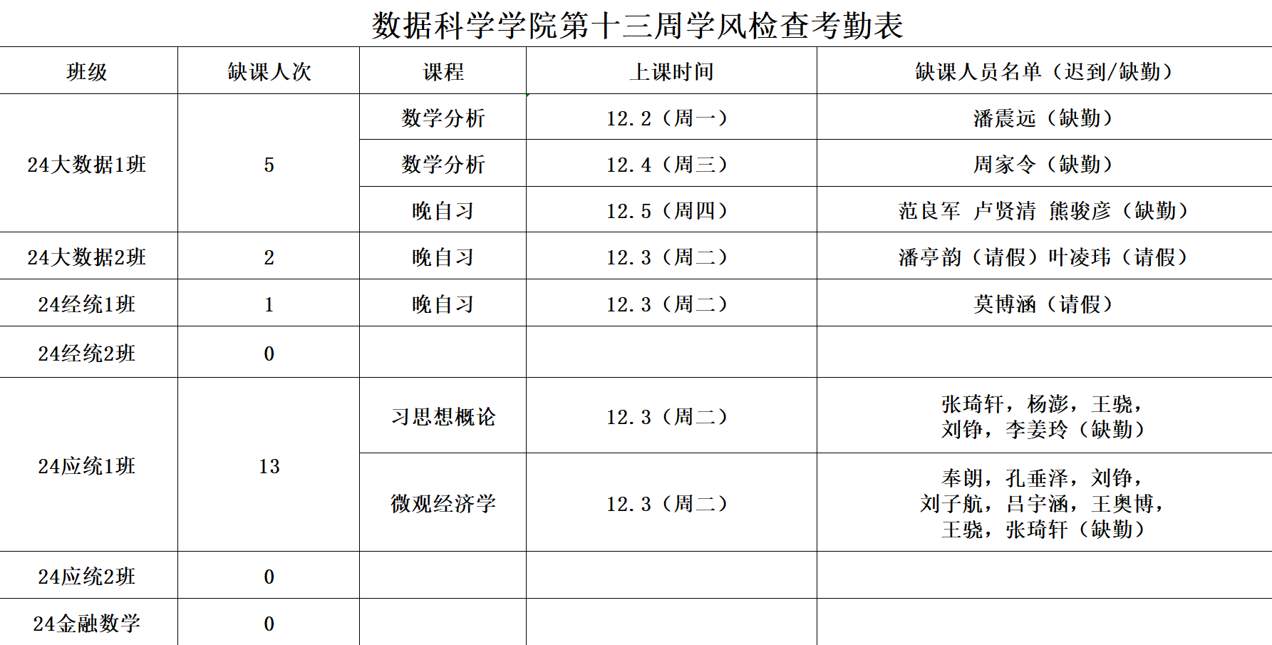 为进一步培育优良学风,构建成人短视频 学风建设的长效机制,营造良好的学习氛围,学院对大一各班晚自习及专业课进行全覆盖点名,对公共课程进行抽查点名,现将考勤情况公布如下: