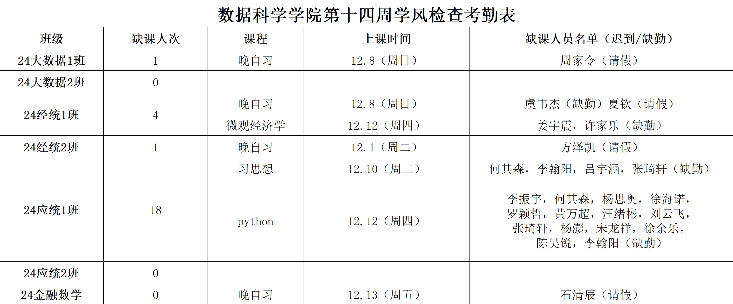 为进一步培育优良学风,构建成人短视频 学风建设的长效机制,营造良好的学习氛围,学院对大一各班晚自习及专业课进行全覆盖点名,对公共课程进行抽查点名,现将考勤情况公布如下:
