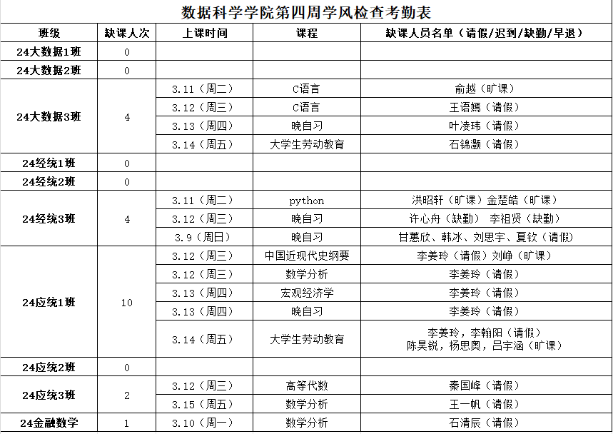学院后续将常态化开展学风巡检抽查,希望同学们严守课堂行为规范,禁止“三无”行为,杜绝旷课、迟到、早退、代课等不良现象,共同营造“好学、勤学、乐学”的优良学气。