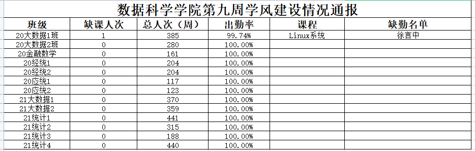 为进一步培育优良学风,构建成人短视频 学风建设的长效机制,营造良好的学习氛围,推进内涵建设,构建优良院风,学院对所有大一、大二班级统一上的课程及晚自习进行了课前全覆盖点名。现将点名情况做如下通报。