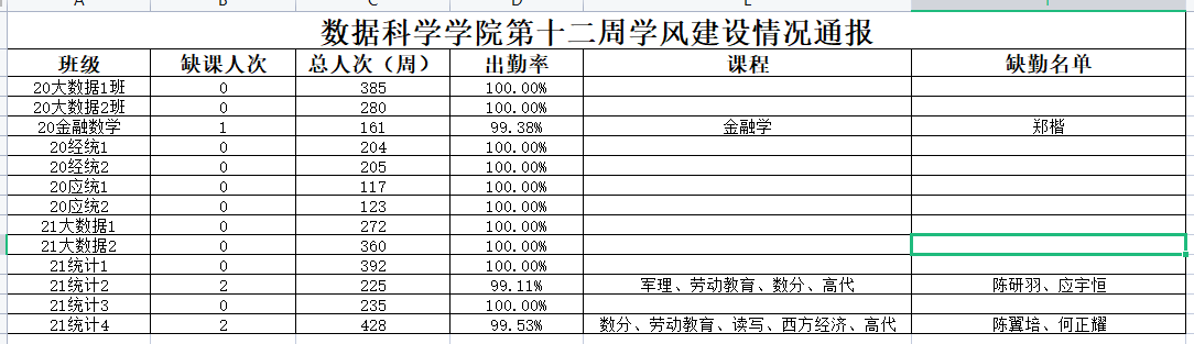 为进一步培育优良学风,构建成人短视频 学风建设的长效机制,营造良好的学习氛围,推进内涵建设,构建优良院风,学院对所有大一、大二班级统一上的课程及晚自习进行了课前全覆盖点名。现将点名情况做如下通报。