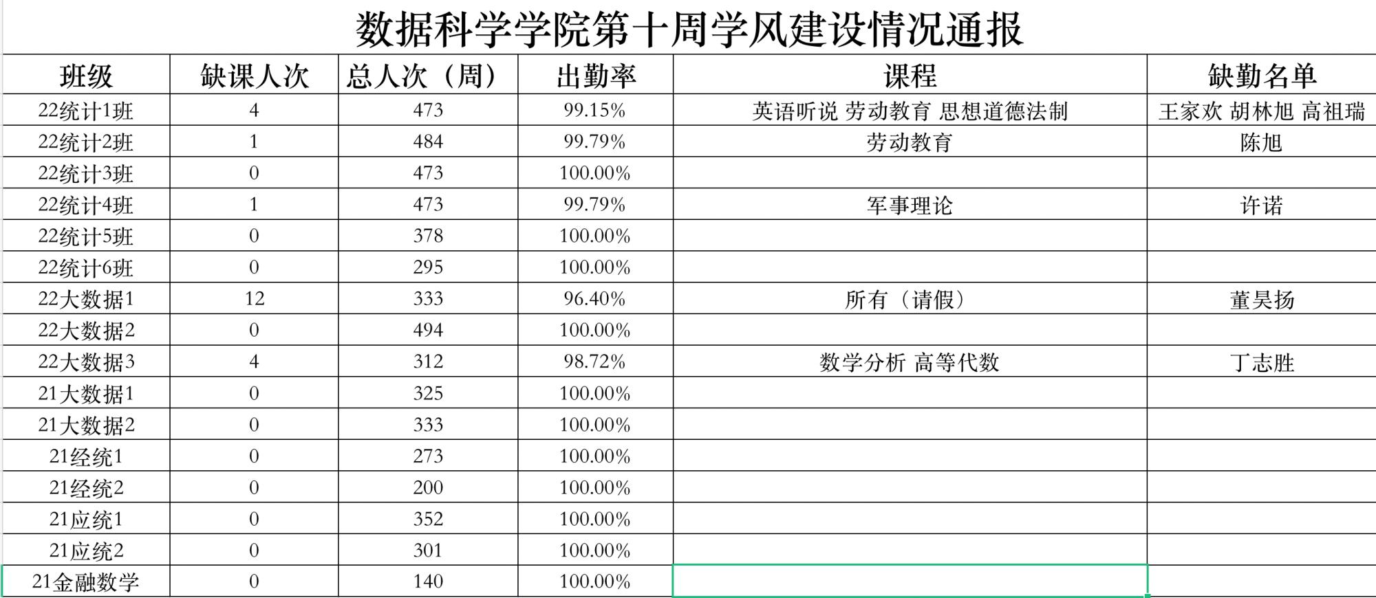 为进一步培育优良学风,构建成人短视频 学风建设的长效机制,营造良好的学习氛围,推进内涵建设,构建优良院风,学院对所有大一、大二班级统一上的课程及晚自习进行了课前全覆盖点名。现将点名情况做如下通报。