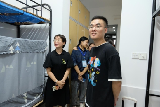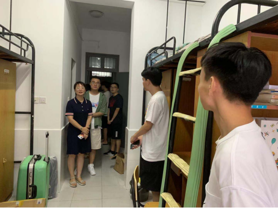 领导班子及班主任代表、新生辅导员助理、班导走访了本科新生以及研究生新生宿舍。面对老师和学长们的亲切问候,学子们或是青涩地低下头静静聆听经验,或是热情地追问未来的学校生活,唯一不变的,是对求学求知的渴望,与心底积极奋进的姿态。
