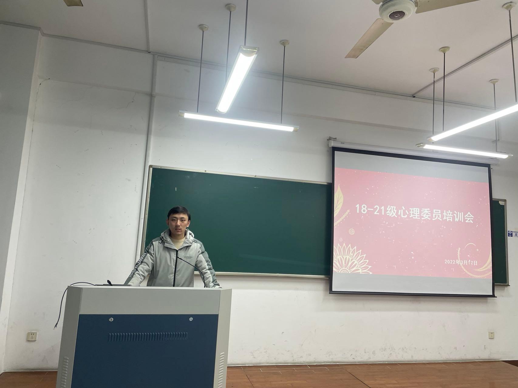 辅导员温从乐主讲,18级-21级各班心理委员参与此次培训。