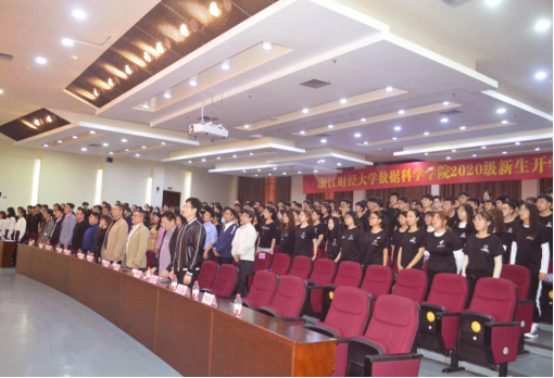 院长洪兴建,党委书记段雪辉,副院长周银香、李杰,党委副书记何露霞等出席典礼,学院各系部主任、教师代表、2020级新生班主任、辅导员及全体2020级新生300余人参加了典礼。典礼由学院党委副书记何露霞主持。