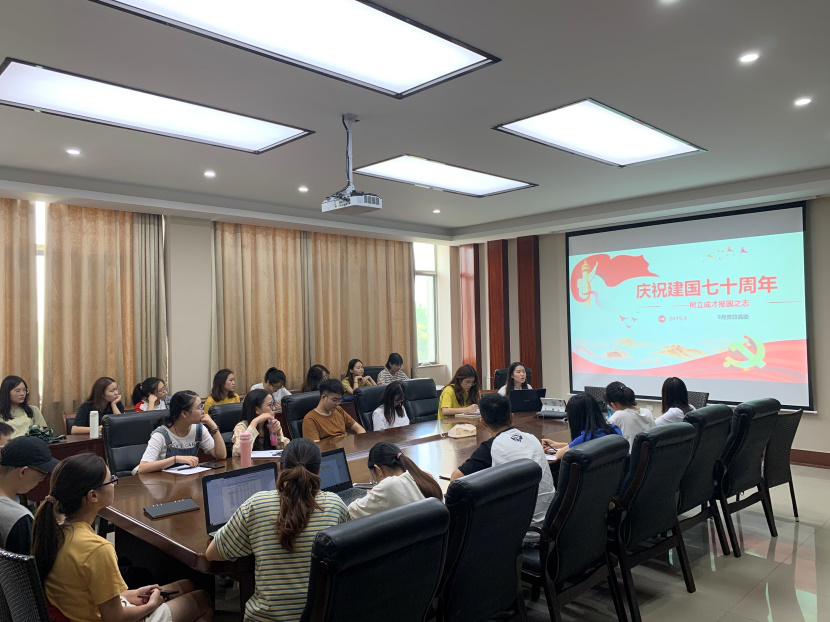 研究生党支部关于庆祝中华人民共和国成立七十周年主题党日活动在6号学院楼402会议室举行。研究生党支部全体党员、预备党员以及入党积分分子参加了此次主题党日活动,会议由研究生党支部书记王心愉主持。