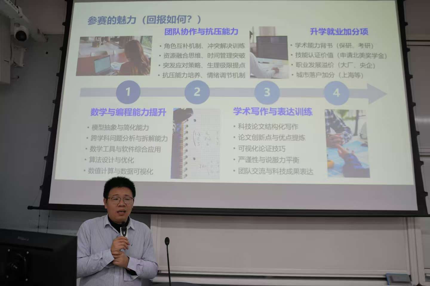 在下沙校区A303教室举办大学生数学建模竞赛指导讲座,邀请杭州电子科技大学的理学院副教授、博士、硕士生导师覃森担任主讲人,主题为“从‘小白’到‘达人’:大学生数学建模竞赛通关攻略”。覃森教授从“数学建模——用数学撬动世界”切入,依次揭秘数模竞赛的规则与魅力、讲解“梦之队”的组建分工逻辑、梳理从新手到“准高手”的备赛路线,并补充了竞赛制胜策略与常见误区提示,为有意参与数模竞赛的学生提供了系统性的实战指引。讲座由成人短视频
