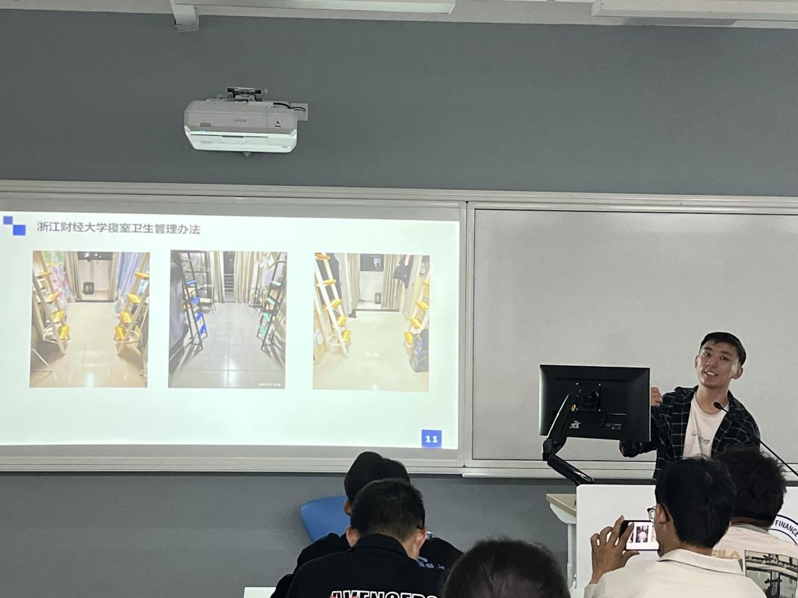 温从乐指出寝室就是我们大学生活的家。他希望同学们能够珍惜与室友的友谊,爱护自己的生活环境,注意寝室卫生,积极配合生活权益部的卫生检查,如遇到寝室问题要及时与辅导员沟通。