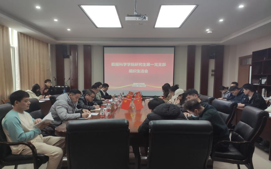 研究生第一党支部在学院402会议室召开组织生活会和党员民主评议会议,校党委委员、组织部、宣传部、统战部部长楼胆群、组织部李茜、数据科学学院党委书记段雪辉、组织员李钊军、研究生辅导员陈巍嘉以及研究生第一党支部全体党员出席此次会议,会议由党支部书记杜星瑞主持。