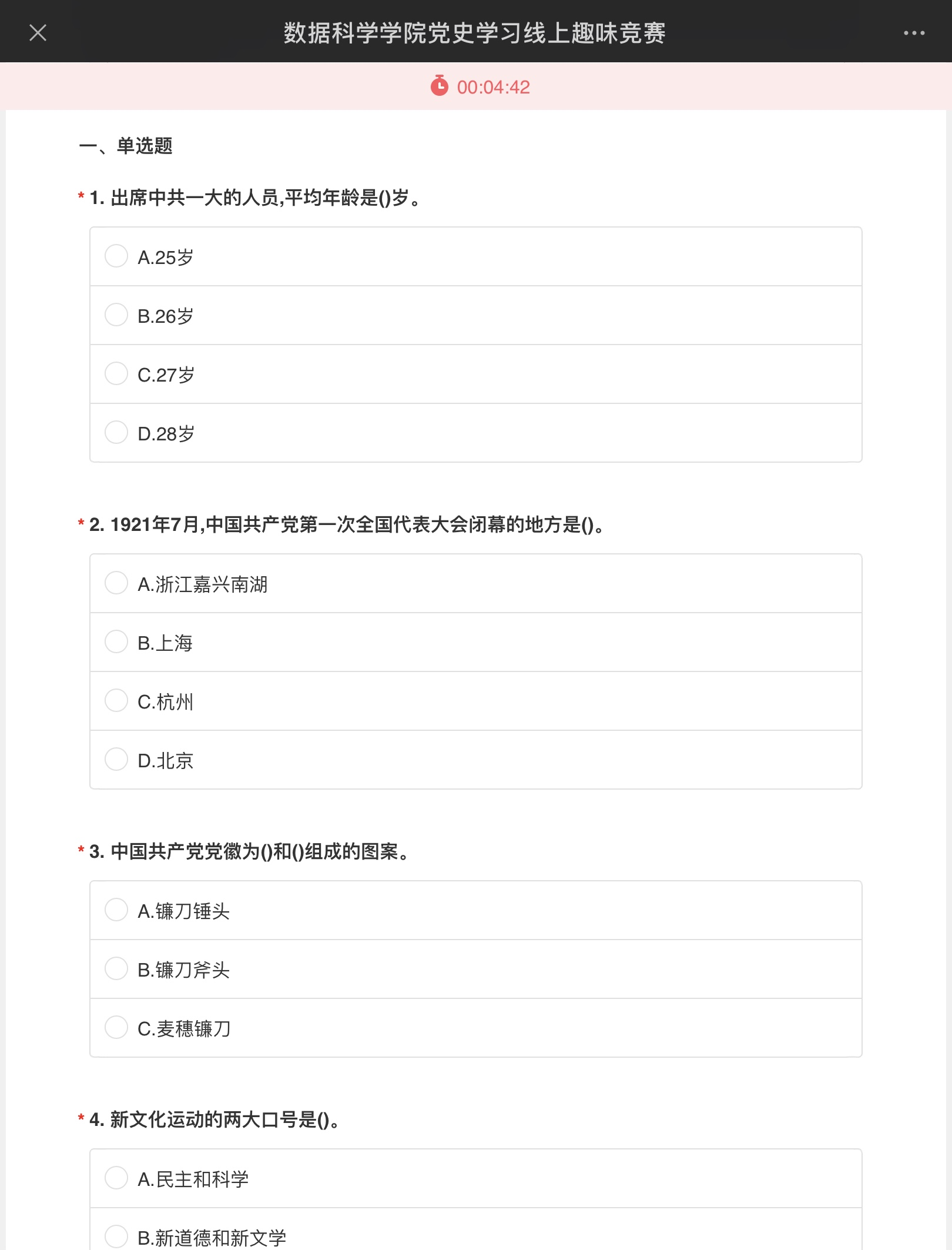 研究生第一党支部举办线上党史答题竞赛,全院师生积极踊跃参加。