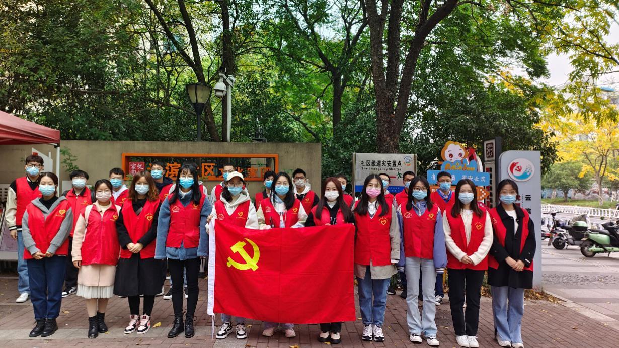 微光如炬,齐心协力,众志成城,研究生第一党支部的党员们化身“红衣战士”,成为街头一道道耀眼的风景线。有的志愿者承担起给核酸检测试剂盒贴标签的任务,为全区核酸检测提供了强力支援;有的志愿者在核酸检测现场维持秩序,检查健康码,督促群众注意保持一米安全距离;还有的志愿者下沉到商场,监督顾客扫码登记,有序有力参与疫情防控工作,用文明实践行动和力量筑牢疫情防控屏障。同时,为促进城市文明建设,以数字赋能化提升城市新时代文明实践志愿服务领域整体水平,党员志愿者们还帮助云滨社区完成“文明帮帮码“扫码志愿活动,实现新时代文明实践志愿服务精准触达。