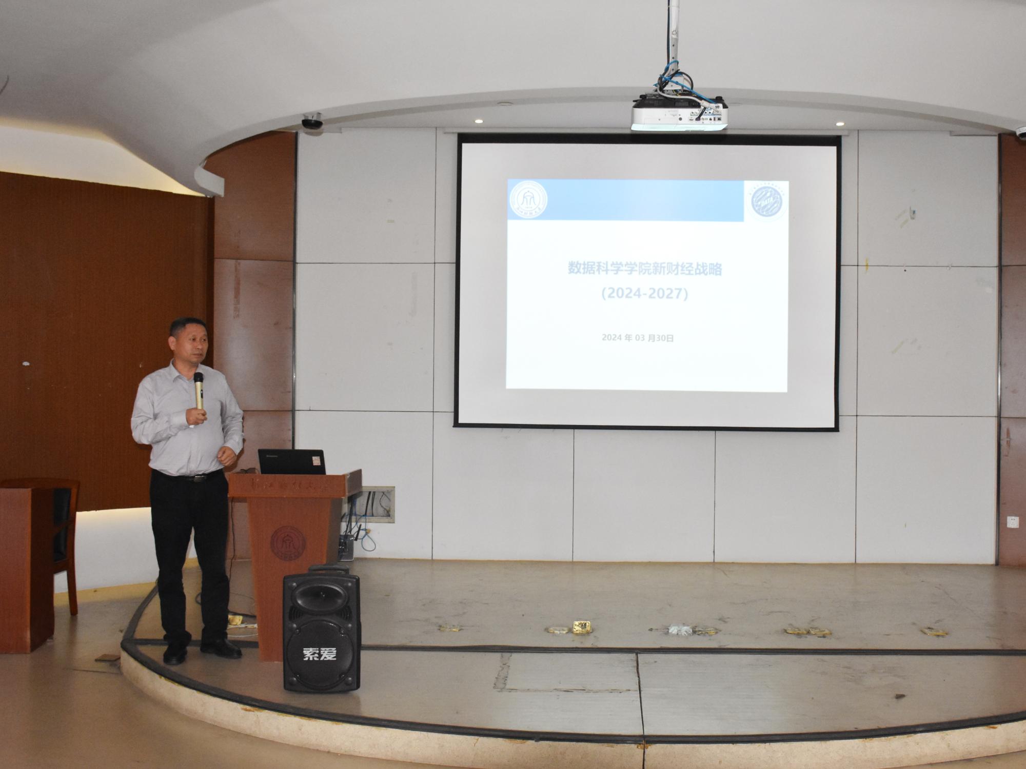 院长洪兴建向全体教职工介绍学院全面落实“新财经战略”的路径规划和任务安排。他介绍了学院目前面临的困难,以及在我校“新财经战略”全局中,成人短视频